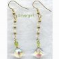 This is a lovingly made pair of pretty yellow green 10mm pearly looking glass drizzle bead earrings. I have added a 10mm faceted crystal clear czech crystal and gold plated caps and ball spacers. All topped off with 14K gold plate shepherd hooks. They are about 1 1/4" long.